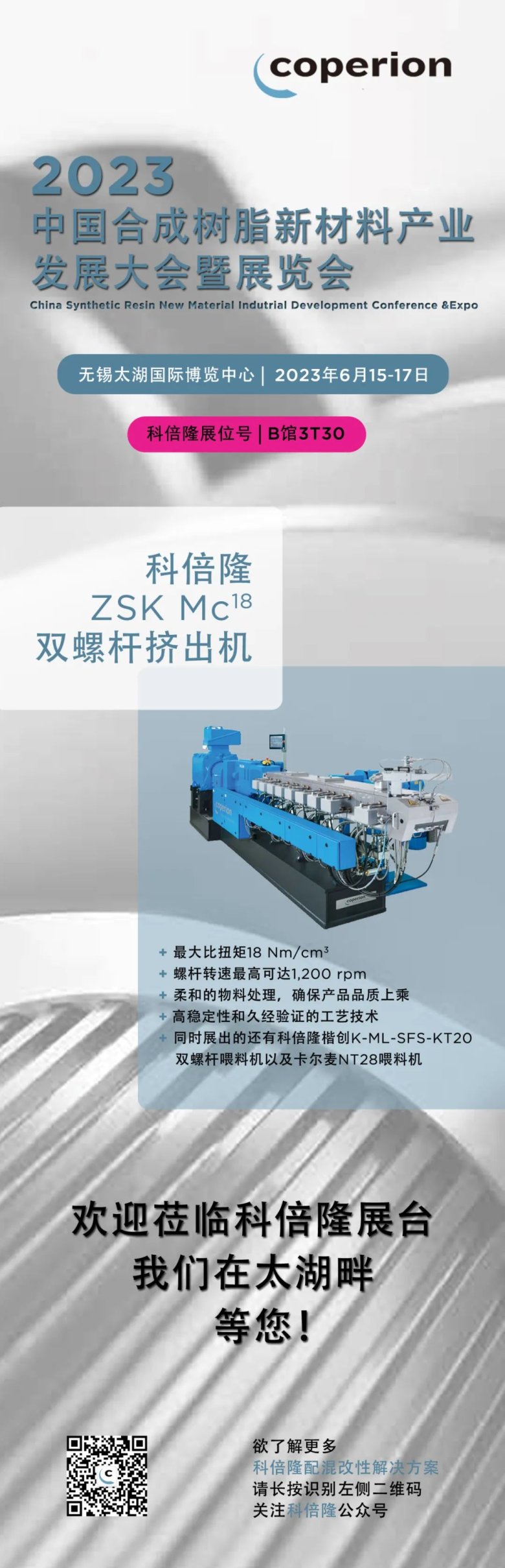近日,暨科倍隆STS系列挤出机面世20周年同时也是科倍隆南京成立20周年之际,科倍隆于11月19-20日在南京举办了一场挤出技术开放日活动,有超过300名行业同仁参加此次盛会。技术开放日:亮点纷呈,干货满满本次为期1天半的技术开放日活动不仅展示了科倍隆在基础技术领域的创新成功,更为行业内带来了一场技